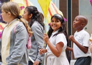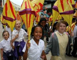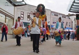 The formal launch of the Maidstone Mela took place on July 14 with some 350 children joined by teachers and parents parading through the town centre led by Dhol Players, African Drummers and the Bloco Fogo Samba Group. The launch was made possible due to funding secured from Arts Council England.